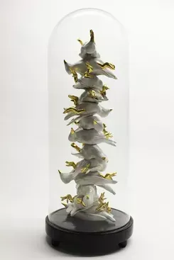 Ein wiederkehrendes Thema ihrer Kunst ist die Dualität menschlicher Erfahrung: Verletzlichkeit und Stärke, Sanftmut und Dunkelheit, Schönheit und Vergänglichkeit. In ihren keramischen Werken reflektiert sie diese Gegensätze mit einer besonderen Materialpoesie – etwa in Serien, die an zeitgenössische Ex-Voto-Objekte erinnern und das Verhältnis von Körper, Glaube und Ritual neu befragen.